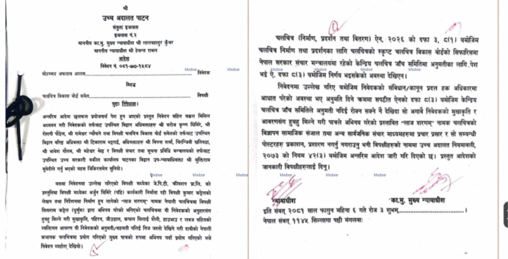 प्रदर्शन तयारीमा रहेको नेपाली चलचित्र ‘लाज शरणम्’को प्रचार प्रसार सामाजिक सञ्जाल र सञ्चार माध्यममा नगर्न, नगराउन उच्च अदालत पाटनले अन्तरिम आदेश दिएको छ ।