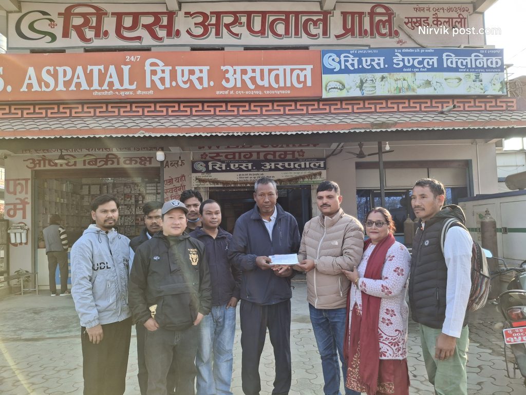 कैलालीको घोडाघोडी नगरपालिका–४ निवासी वीरबहादुर चौधरी दुवै मिर्गौला फेल भएपछि उपचारका लागि आर्थिक समस्यामा परेका छन्। लामो समयदेखि किड्नी रोगबाट पीडित चौधरीको उपचार खर्च धान्न कठिन भएपछि सि एस अस्पताल सुखडले आर्थिक सहयोग गरेको छ।